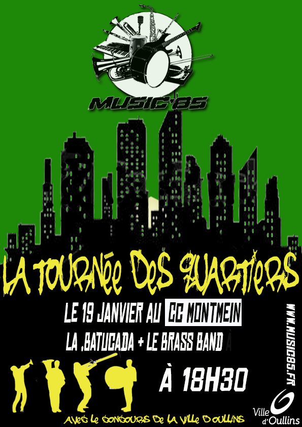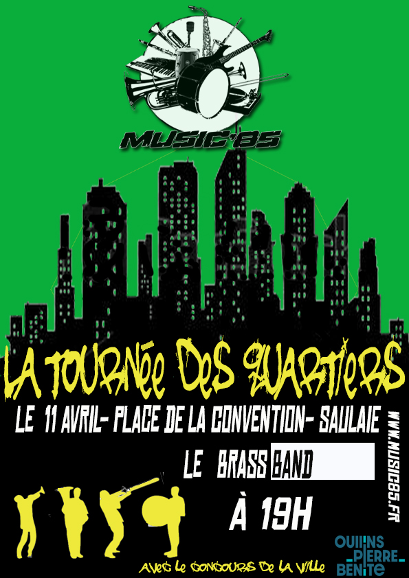 Le Magic 85 Orchestra, Big Band Soul funk de votre école de musique s’essayera vendredi 12 avril à l’éxercice de la Tournée des Quartiers sur le site du centre commercial des Céléstins à 18h30. S’ensuivra un concert de 2 ensembles de Music85, L’atelier 5 et Nelly & The Boyz, au Faitout (12 rue Gabriel Perri) à partir de 20h.