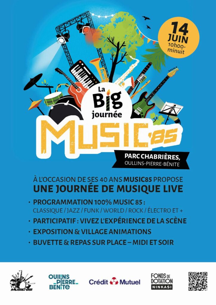 🎉 Music 85 fête ses 40 ans ! 📅 Samedi 14 juin – de 10h à minuit 📍 Parc Chabrières à Oullins – Entrée gratuite