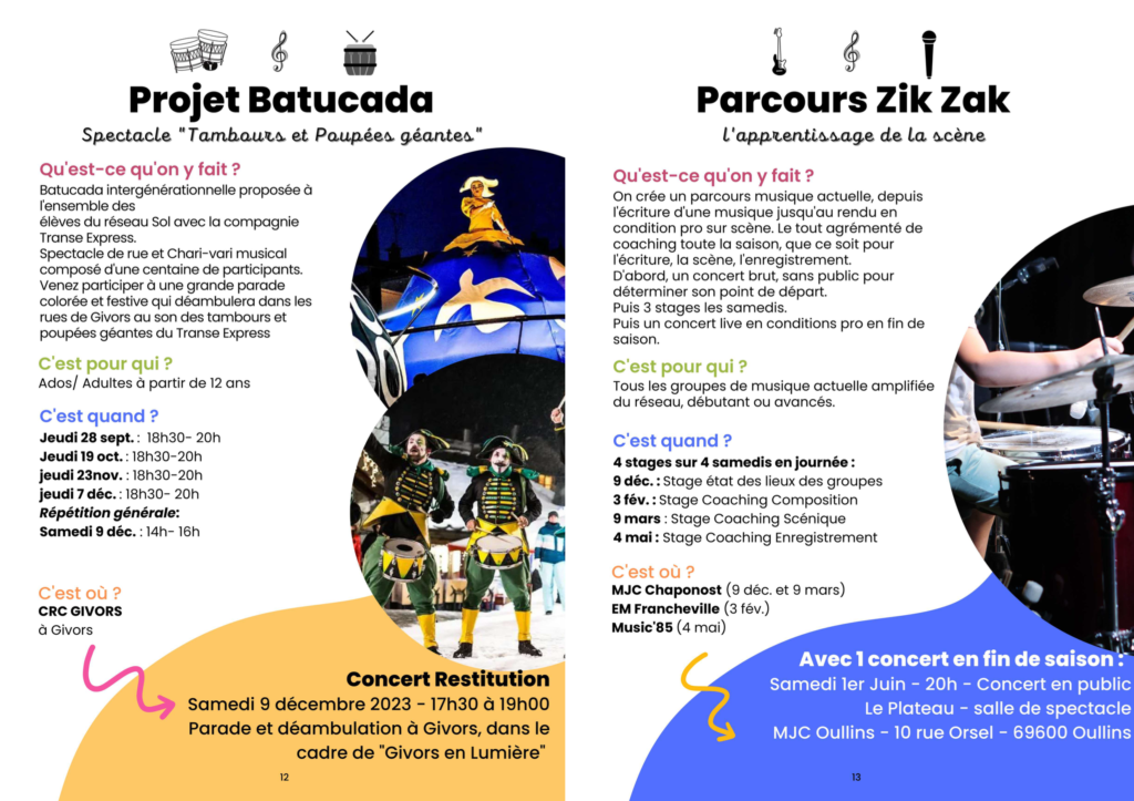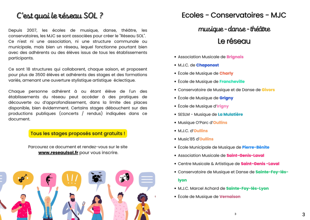 Depuis 2007, les écoles de musique, danse, théâtre, les conservatoires, les MJC se sont associées pour créer le « Réseau SOL ».